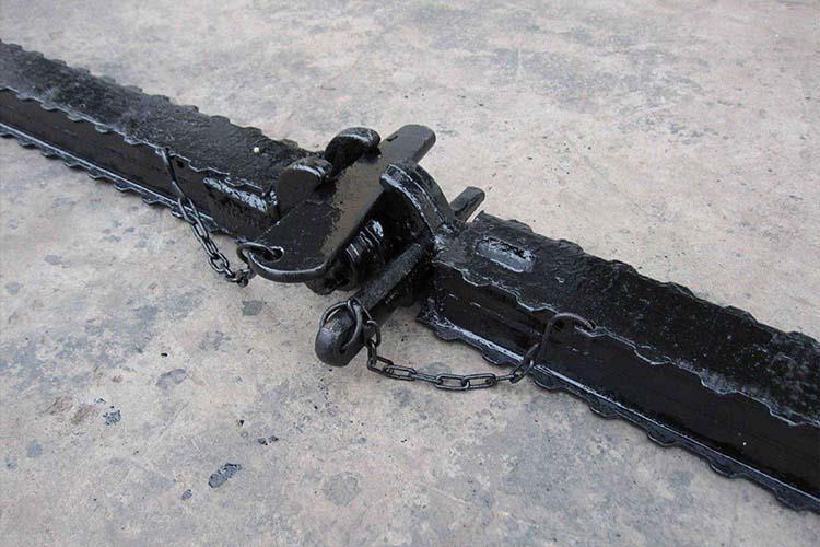 鉸接頂梁是煤礦巷道中常用的支護(hù)頂梁,其長(zhǎng)度比較短,帶有鉸接連接頭,它可以與帶有鉸接頂蓋的各種類(lèi)型的單體液壓支柱配合使用組成金屬支架,供煤礦的水平及緩傾斜回采工作面支護(hù)使用。鉸接頂梁能懸臂支護(hù)工作面輸送機(jī)上面的頂板,使煤壁與支柱間有較大的空間,從而為采用新型采煤機(jī)械和可彎曲輸送機(jī),實(shí)現(xiàn)采煤機(jī)械化提供條件。